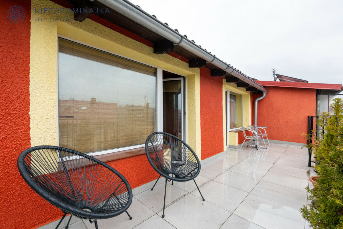 Na działce znajduję się wolnostojący garaż z bramą automatyczną. Dodatkowo nieruchomość posiada 3 balkony i taras. Budynek jest ocieplony, ogrzewany piecem gazowym. Woda i kanalizacja z miasta.