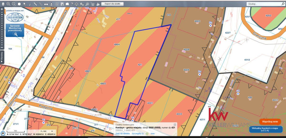 Tylko w Keller Williams!Działka budowlana w centrum Kwidzyna - ul. Podgórna (nr 421) - 782 m²